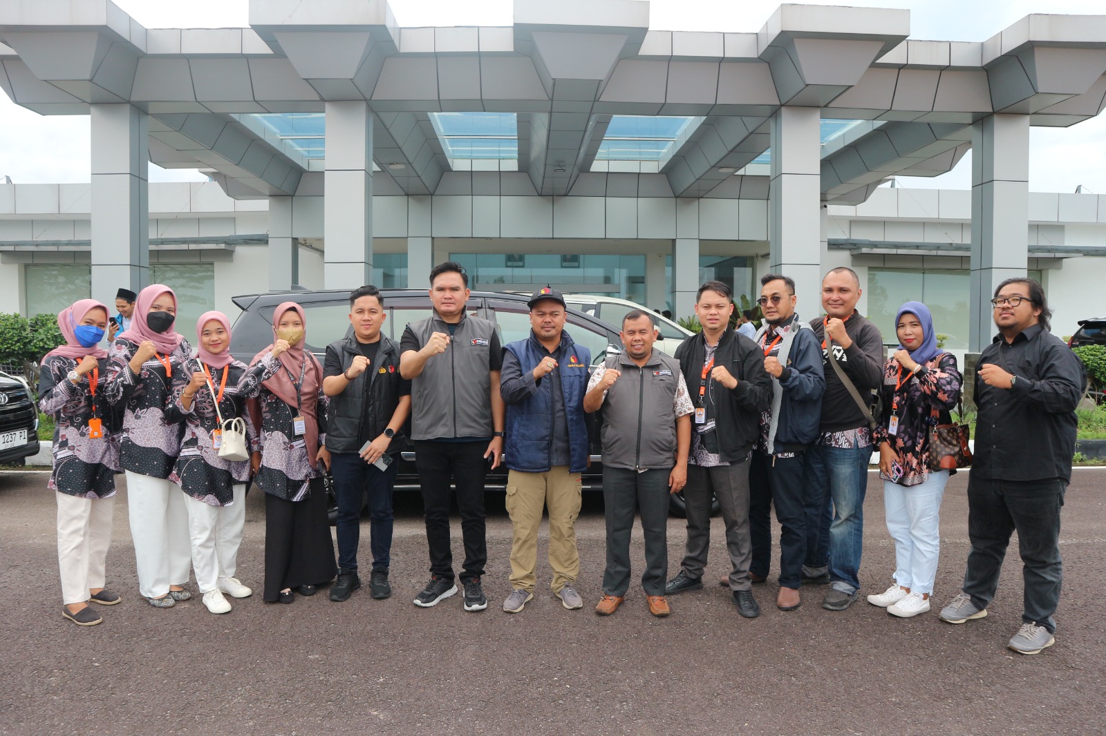 Foto bersama jajaran pengawasan pemilu saat melakukan pengawasan melekat kedatangan Calon Presiden nomor urut 02 Prabowo Subianto di terminal kedatangan VIP Bandara Depati Amir.