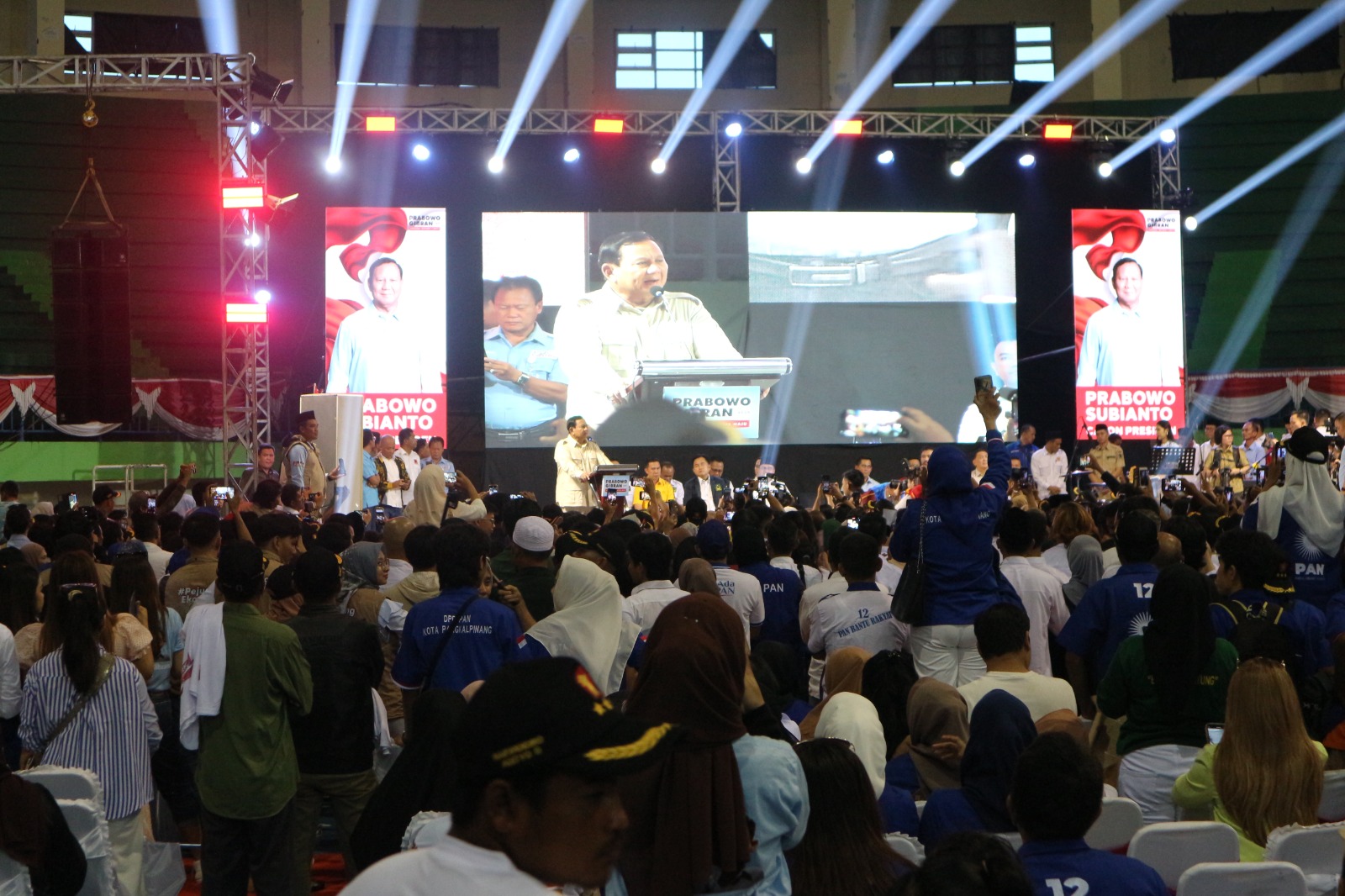 Saat agenda konsolidasi Calon Presiden nomor urut 02 Prabowo Subianto di GOR Sahabudin, Kabupaten Bangka Tengah.