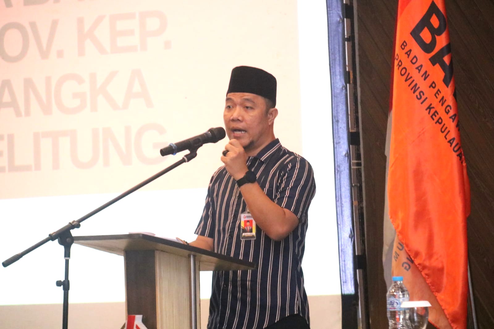 Ketua Bawaslu Babel EM Osykar saat menyampaikan sambutan pembuka dalam rapat fasilitasi Sentra Gakkumdu di Hotel Santika, Kabupaten Bangka Tengah.