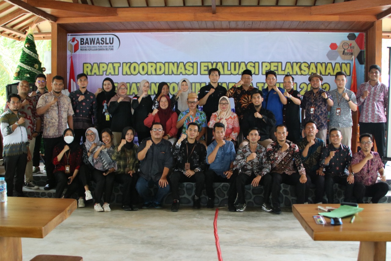 Tanjung Pandan, Babel.Bawaslu.go.id -- Untuk mengevaluasi tata cara dan metode pelaksanaan forum warga Bawaslu Kabupaten/Kota sekaligus melakukan peningkatan kualitas pengawas pemilu dalam melakukan sosialisasi dan pengembangan gerakan pengawasan partisipatif di tingkat akar rumput, Bawaslu Provinsi Kepulauan Bangka Belitung (Bawaslu Babel) lakukan Rapat Koordinasi Evaluasi Pelaksanaan Kegiatan Forum Warga Tahun 2022.