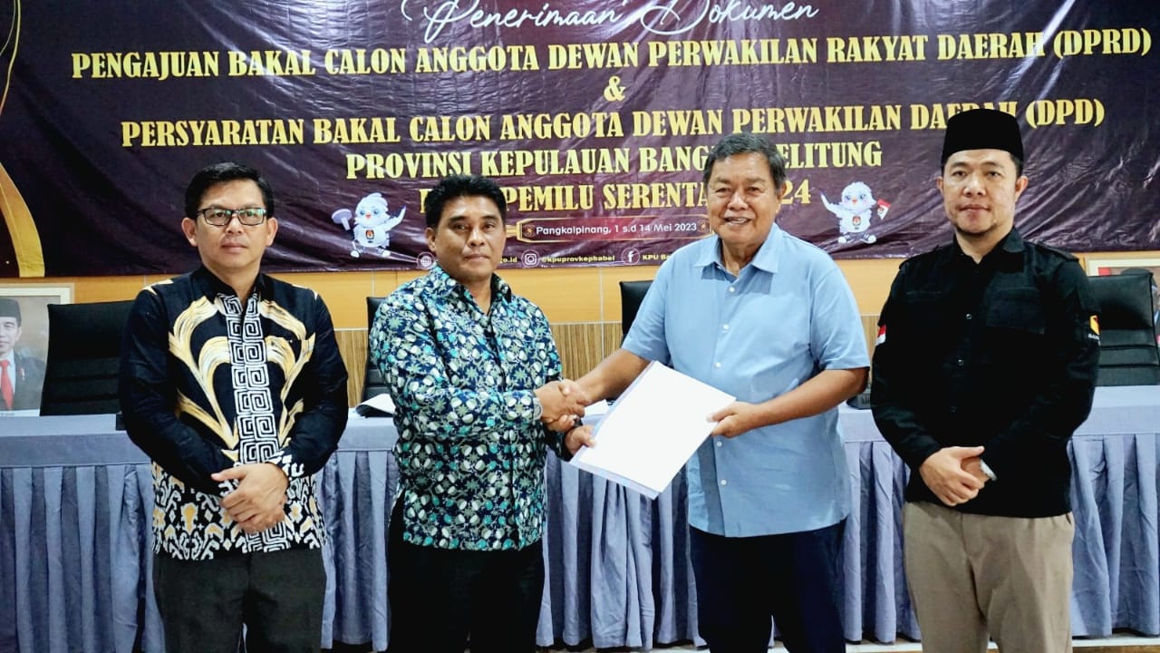"Kami ucapkan terima kasih kepada Bawaslu Babel yang telah melakukan fungsi pengawasan pelaksanaan pendaftaran bakal calon DPD ini dan terima kasih kepada bakal calon yang mendaftar sesuai dengan jadwal yang telah ditetapkan," buka Husin, Anggota KPU Provinsi Babel.