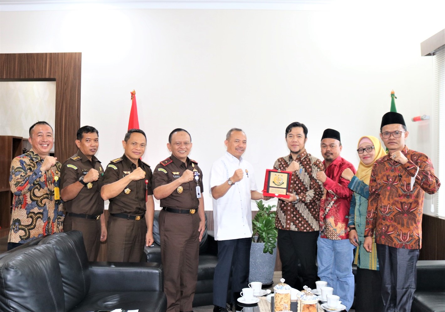 Diakhir pertemuan, Bawaslu dan Kejati Babel saling memberikan penghargaan berupa pelakat sebagai bentuk kesiapan bersinergi awasi tahapan pemilu Tahun 2024.