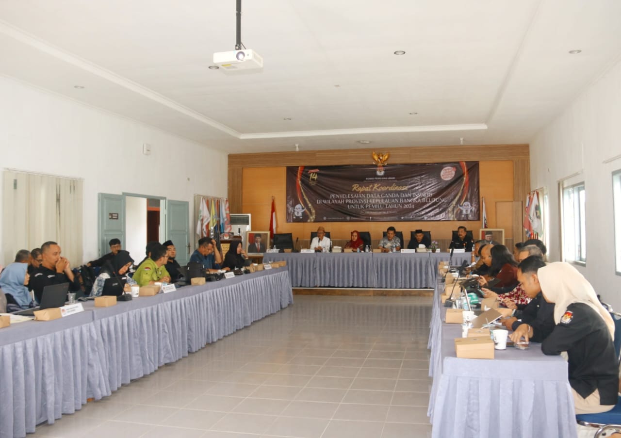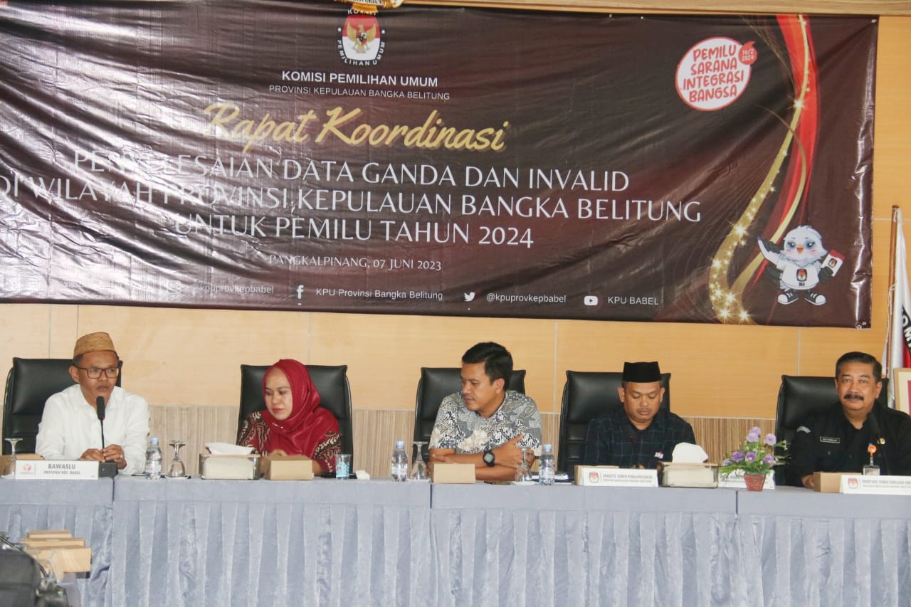 Pangkalpinang, Bawaslu Provinsi Kepulauan Bangka Belitung -- Komisi Pemilihan Umum (KPU) Provinsi Kepulauan Bangka Belitung (Babel) hari ini menggelar Rapat Koordinasi Penyelesaian Data Ganda dan Invalid di Wilayah Provinsi Kepulauan Bangka Belitung Untuk Pemilu Tahun 2024.