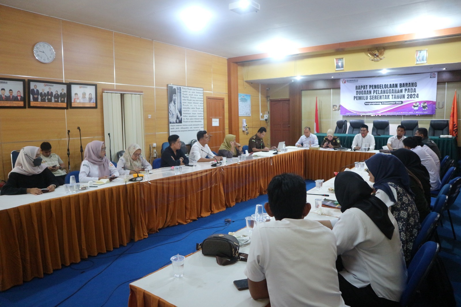 Pangkalpinang, Bawaslu Babel -- Bawaslu Provinsi Kepulauan Bangka Belitung (Babel) menggelar rapat pengelolaan barang dugaan pelanggaran pada Pemilu Serentak Tahun 2024 di ruang rapat Bawaslu Babel. Pada agenda ini Anggota Bawaslu