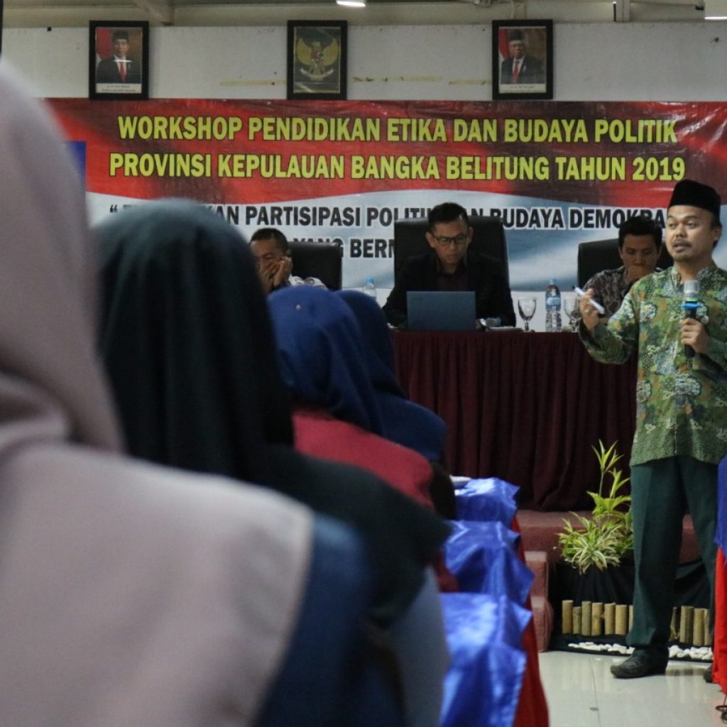 Hal ini disampaikan Anggota Bawaslu Provinsi Kepulauan Bangka Belitung Jafri saat menjadi narasumber dalam kegiatan workshop pendidikan dan etika budaya politik guna meningkatkan partisipasi politik dan budaya demokrasi yang bermartabat.