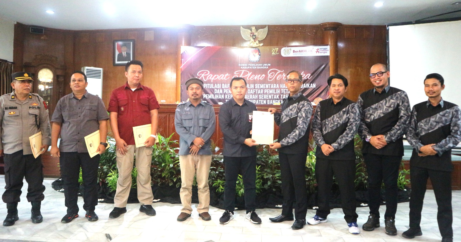 Berdasarkan berita acara KPU Kabupaten Bangka Nomor : 129/PL.01.2-BA/1901/2024, menetapkan sebanyak 237930 orang dari 8 Kecamatan dan 81 Desa/Kelurahan di Kabupaten Bangka masuk dalam daftar pemilih tetap (DPT) Pemilihan Kepala Daerah (Pilkada) serentak tahun 2024, jumlah tersebut terdiri dari pemilih laki-laki sebanyak 121459 orang dan pemilih perempuan sebanyak 116471 orang.