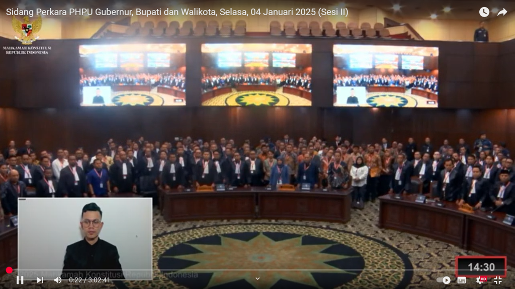 Pimpinan Bawaslu Provinsi Kepulauan Bangka Belitung bersama Bawaslu Kabupaten/Kota menghadiri persidangan di Mahkamah Konstitusi, Jakarta. Dalam sidang ini diketahui bahwa hakim konstitusi memutuskan dan menetapkan perkara perselisihan hasil pemilihan kabupaten Belitung Timur tidak dapat diterima, sedangkan terhadap perkara perselisihan hasil pemilihan Gubernur dan Wakil Gubernur Kepulauan Bangka Belitung belum ada keputusan ataupun ketetapan dari Mahkamah Konstitusi, Majelis hakim konstutusi menegaskan bahwa perkara nomor 266/PHPU.GUB-XXIII/2025 dilanjutkan ke persidangan berikutnya dengan agenda pembuktian pada tanggal 7 s.d 17 Februari 2025.