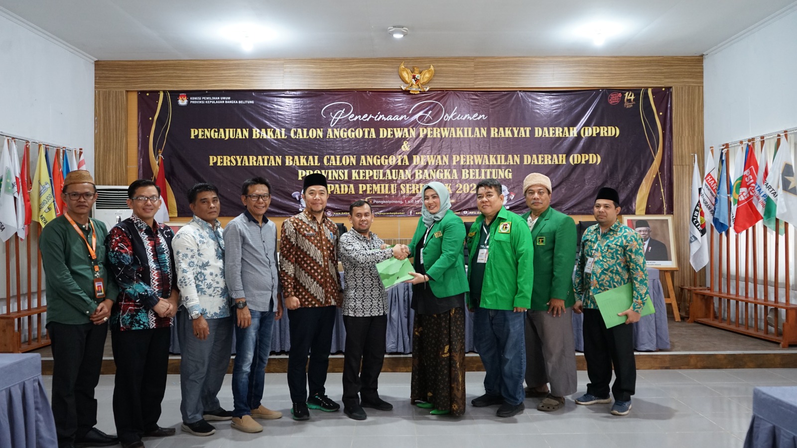 Hasil pengawasan yang dilakukan oleh Bawaslu Babel, terpantau hari ini 2 (dua) Bakal Calon Anggota DPD yang menyerahkan dokumen, yaitu atas nama Alexander Fransiscus dan Herry Erfian, berkasnya diterima oleh KPU serta 2 (dua) Parpol yang menyerahkan dokumen yaitu Partai Amanat Nasional (PAN) berkasnya diterima oleh KPU dan Partai Persatuan Pembangunan (PPP) berkasnya dikembalikan untuk dilakukan perbaikan.