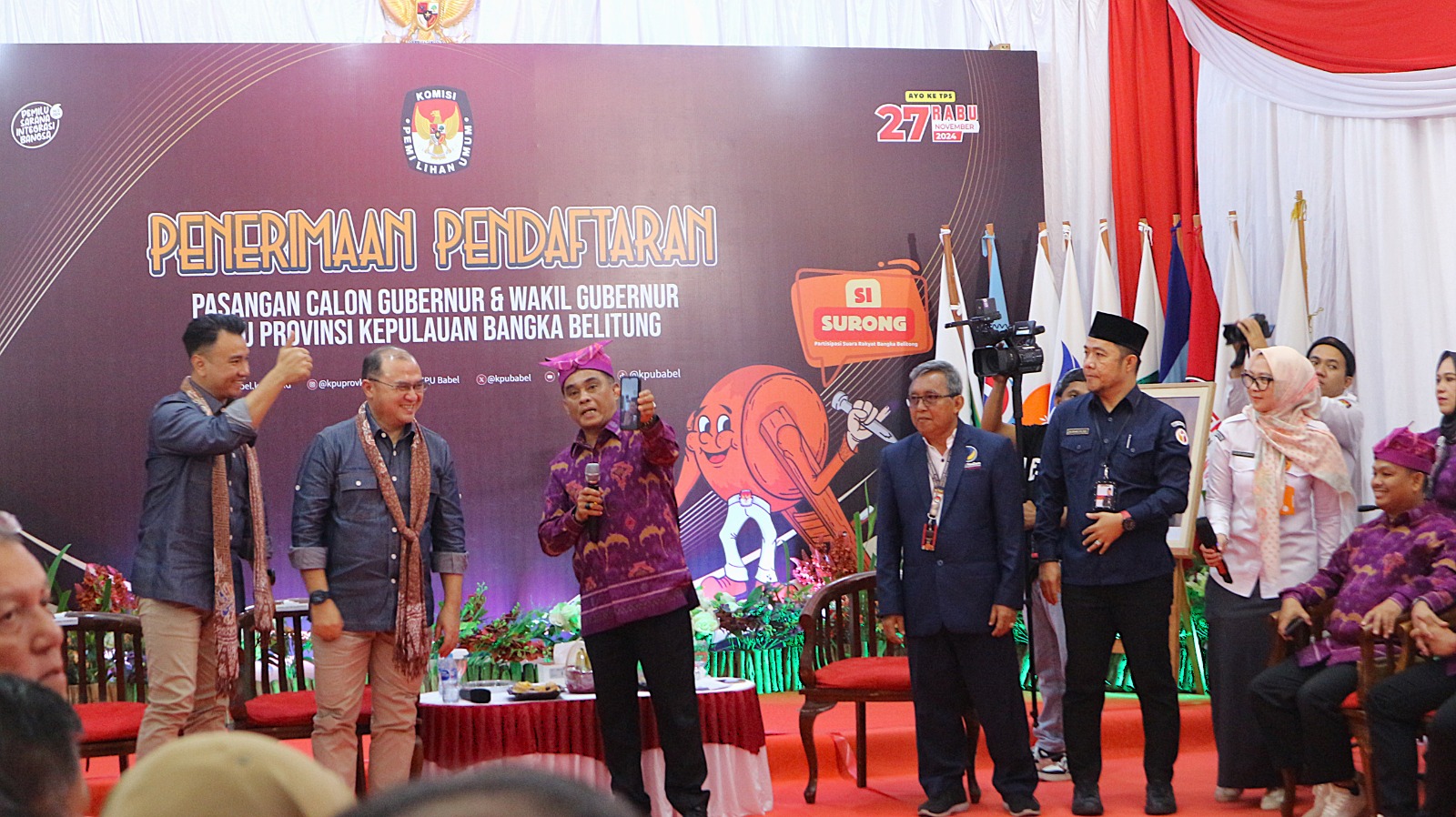 “Untuk kehadiran pimpinan partai pengusung, mohon diperhatikan. Apabila yang bersangkutan berhalangan hadir secara langsung maka perlu dihadirkan secara daring sebagaimana aturan dan ketentuan yang berlaku,†tegas EM Osykar, Ketua Bawaslu Babel.