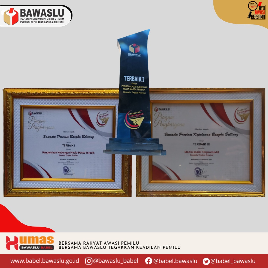 Penghargaan tersebut diraih atas Predikat Terbaik Pertama dalam Pengelolaan Hubungan Media Massa dan Predikat Terbaik Ketiga dalam Pengelolaan Media Sosial Terproduktif dari 34 Bawaslu Provinsi yang ada di Indonesia.