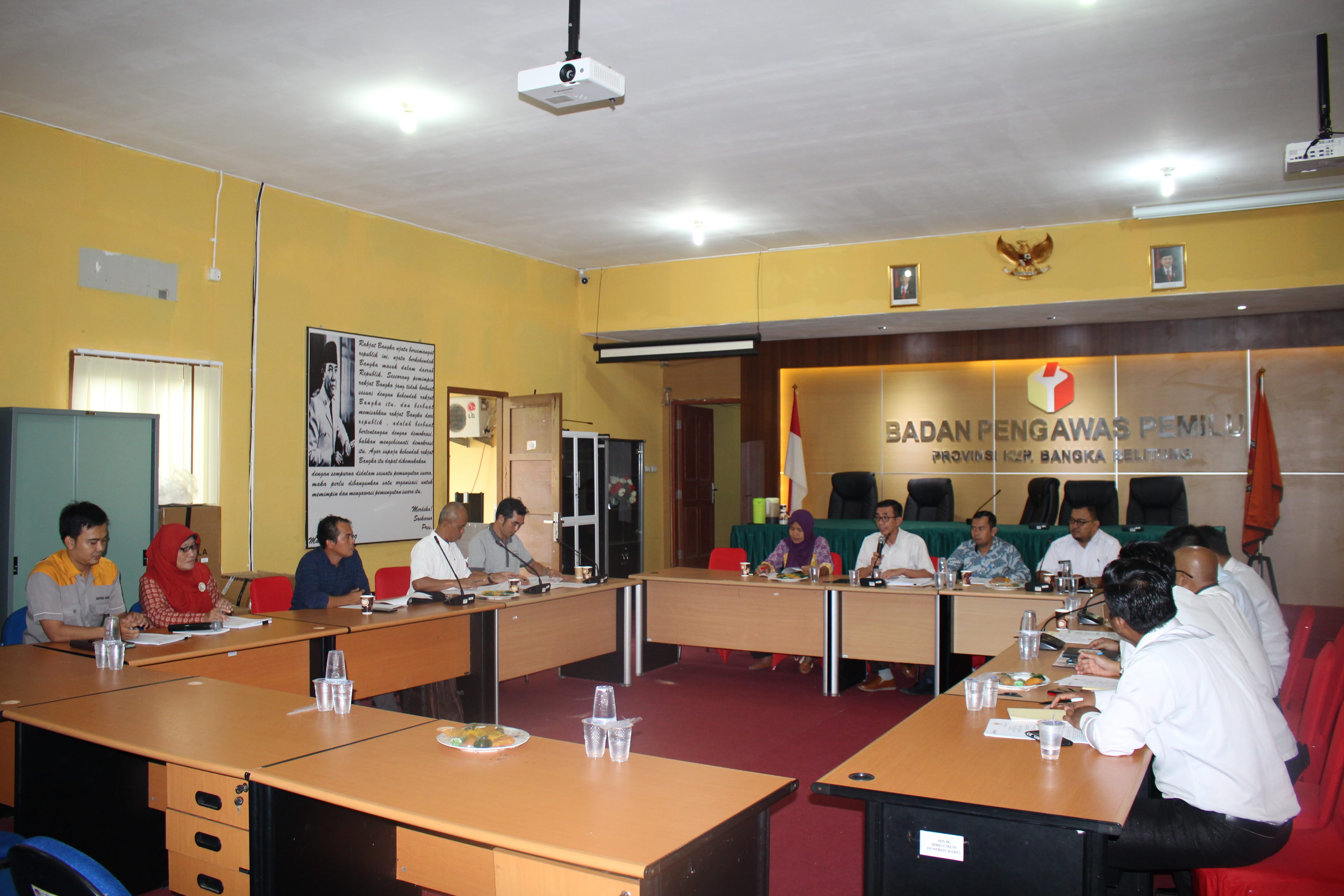 Pangkalpinang – Bawaslu Babel. Badan Pengawas Pemilu Provinsi Kepulauan Bangka Belitung lakukan pembahasan MoU terkait Kampanye Pemilu bersama beberapa Lembaga Pemerintah yakni KPID Prov. Kep. Babel, KPU Prov. Kep. Babel, KIP Prov. Kep. Babel dan KPAD Prov. Kep. Babel yang dilaksanakan di ruang Rapat Bawaslu Babel pada Kamis (04/10).