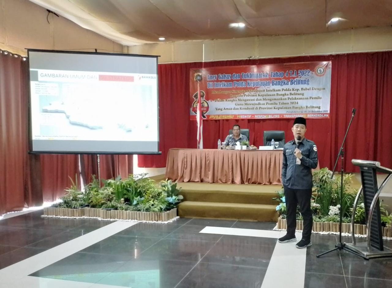 Dalam agenda tersebut Ketua Bawaslu ini juga menjelaskan mengenai Indeks Kerawanan Pemilu (IKP) di Bangka Belitung,