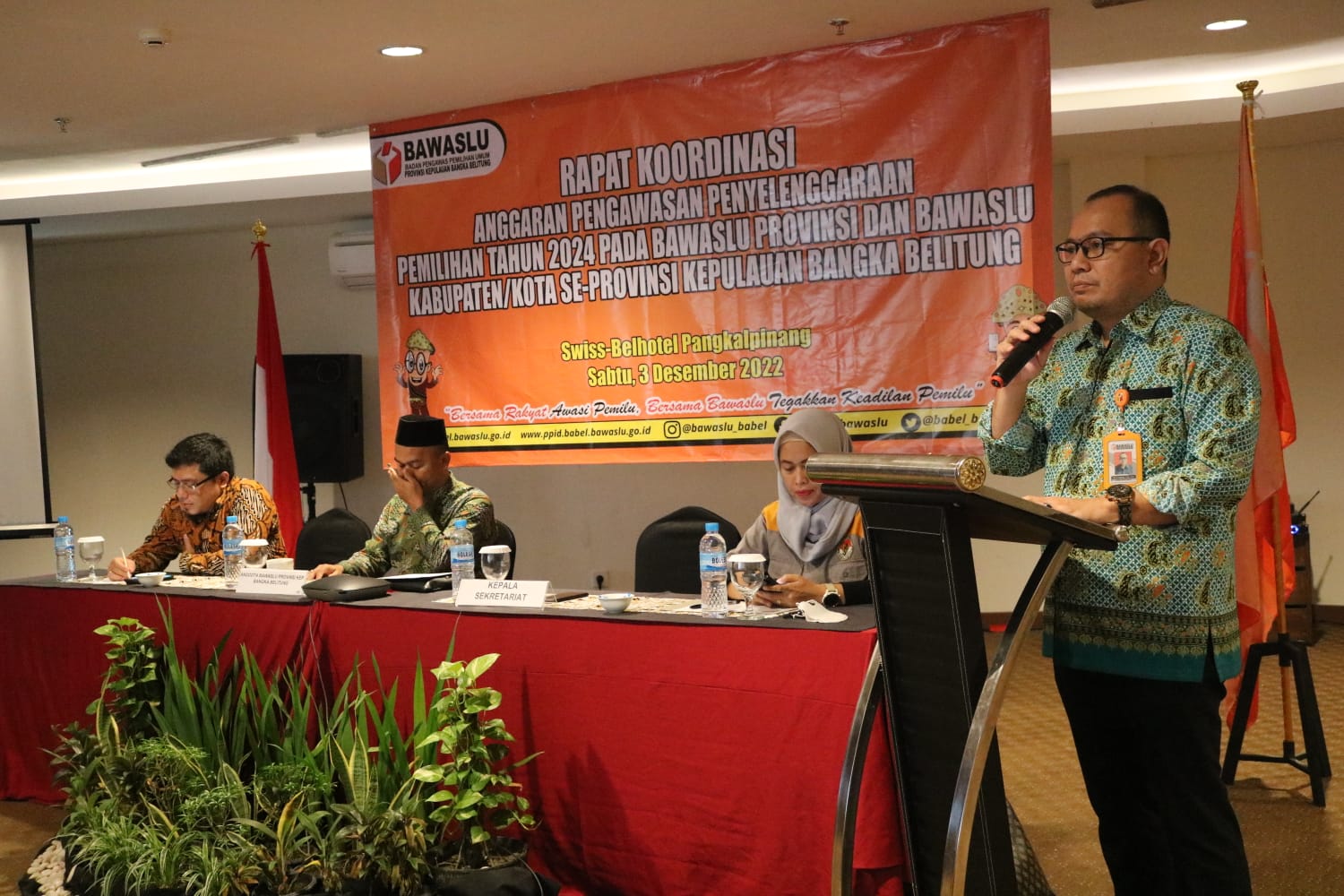 Pangkalpinang, Babel.Bawaslu.go.id - Bawaslu Provinsi Kepulauan Bangka Belitung (Babel) menggelar Rapat Koordinasi Anggaran Pengawasan Penyelenggaraan Pemilihan Tahun 2024 pada Bawaslu provinsi dan Bawaslu kabupaten/kota di Babel, Sabtu (3/12/2022).
