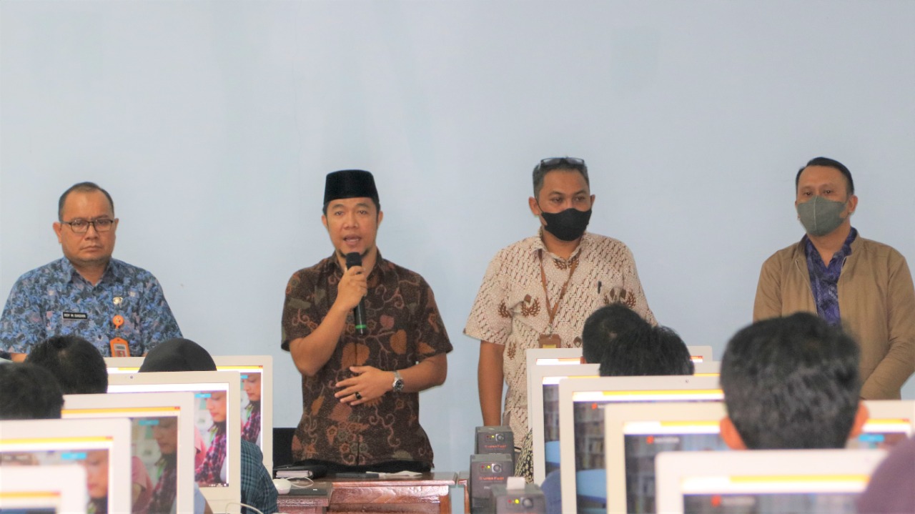 Ketua Bawaslu Babel (tengah) didampingi Ketua Bawaslu Kabupaten Belitung Timur, Kepala Sekretariat Bawaslu Babel serta Anggota Bawaslu Kabupaten Belitung Timur menyampaikan arahan kepada peserta CAT calon anggota Panwascam Kabupaten Belitung Timur