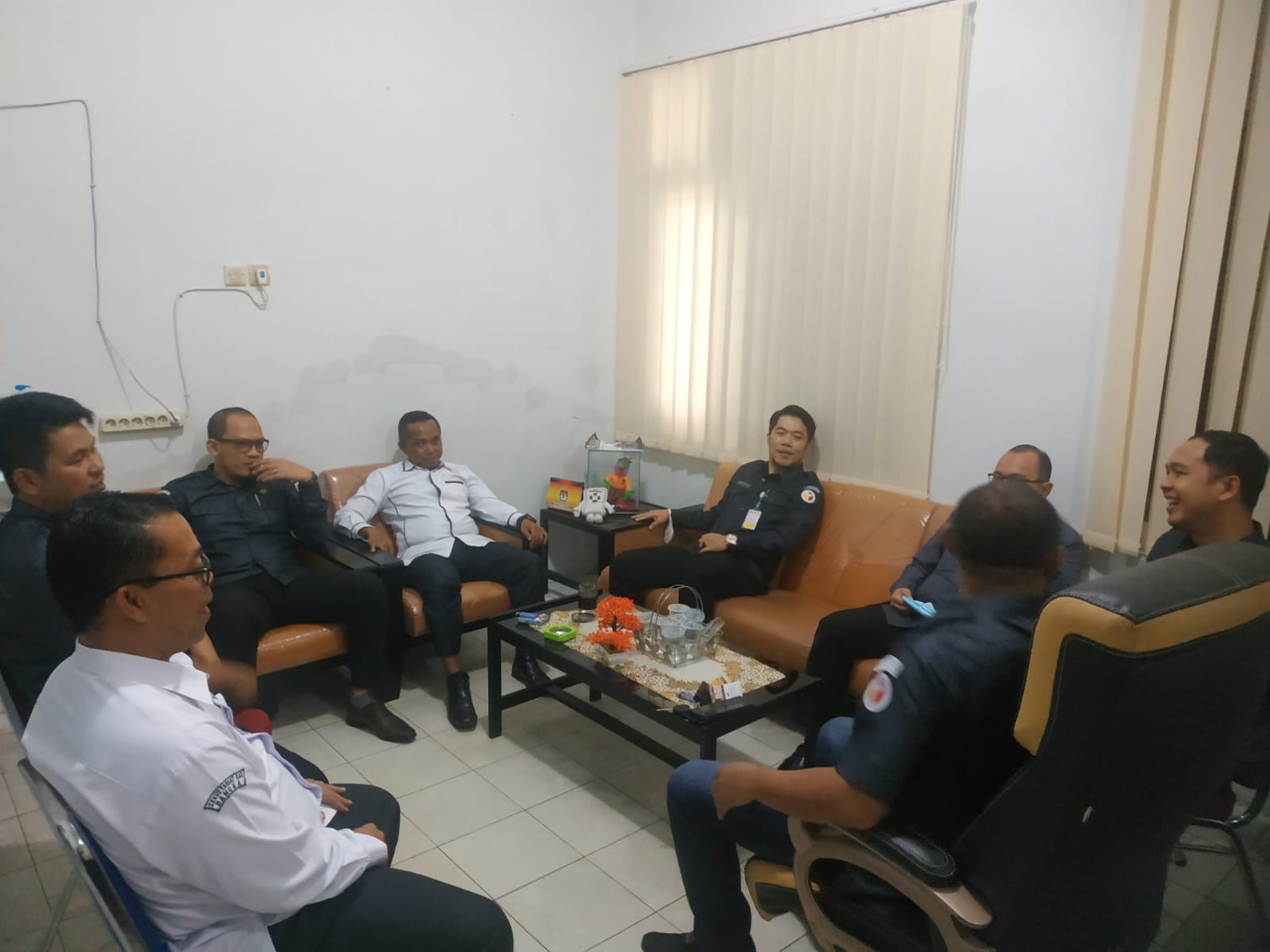 Rombongan Bawaslu Babel yang ditemani Ketua dan Anggota Bawaslu Kabupaten Bangka, disambut langsung Anggota KPU Kabupaten Bangka Arsyil Azis beserta Sekretaris KPU Kabupaten Bangka Basuni.