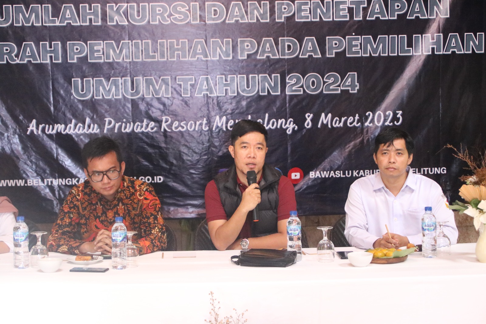 Membalong, Bawaslu Provinsi Kepulauan Bangka Belitung – Ketua Bawaslu Provinsi Kepulauan Bangka Belitung (Babel) EM Osykar menjadi narasumber dalam kegiatan Rapat Evaluasi Publikasi dan Dokumentasi Tahapan Penetapan Jumlah Kursi dan Penetapan Daerah Pemilihan yang diselenggarakan oleh Bawaslu Kabupaten Belitung. (8/3/2023)