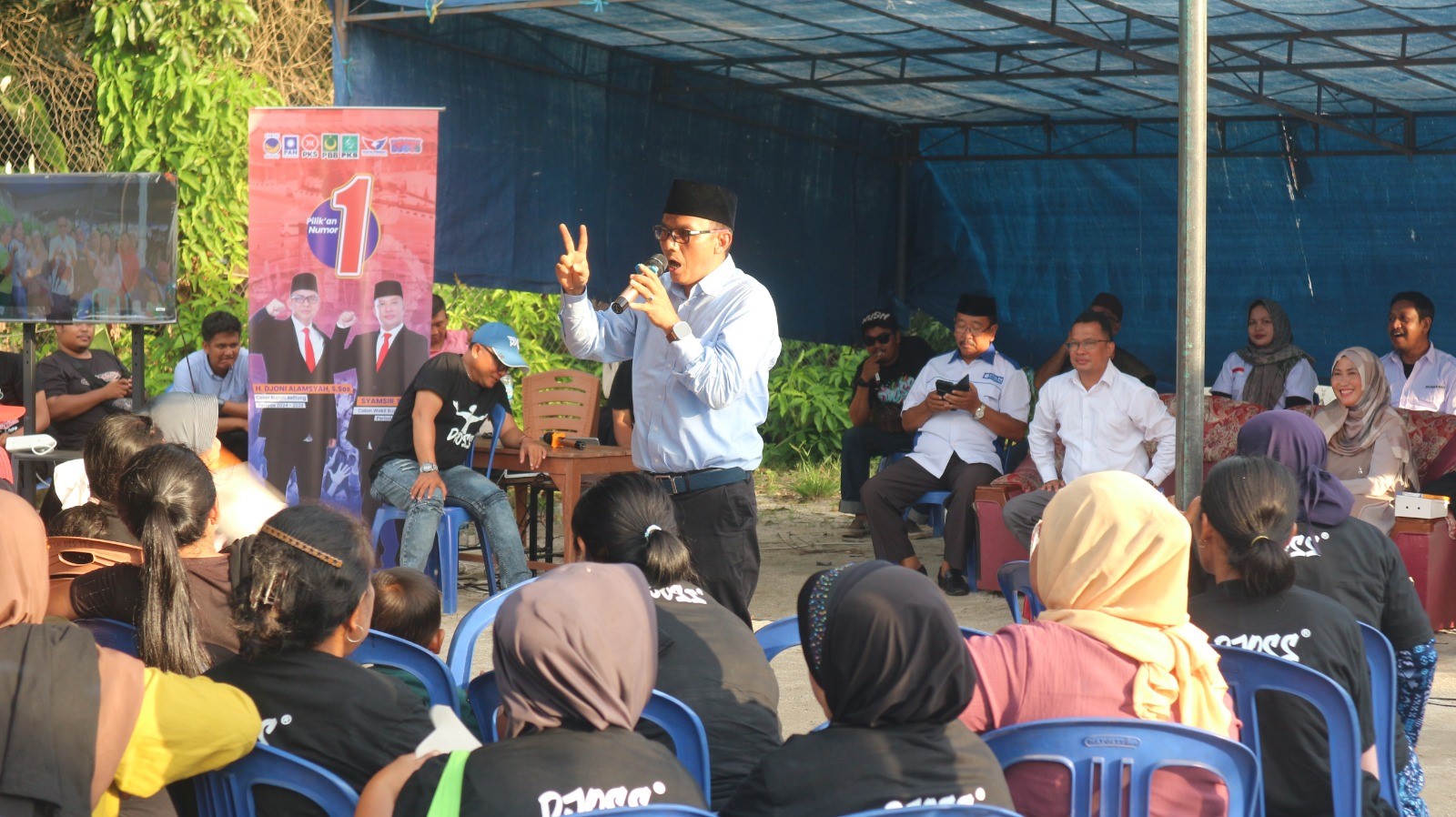 Terpantau di lapangan, kampanye yang dilakukan langsung oleh Pasangan Calon Nomor Urut 1 Bupati dan Wakil Bupati atas nama Djoni Alamsyah Hidayat, S.Sos dan Syamsir, S.Ikom (DJOSS) secara tatap muka, bertempat di Lapangan olahraga Jl. H. Abdullah RT 008 RW 002 Desa Tanjung Tinggi Kecamatan Sijuk Kabupaten Belitung sesuai dengan STTP, Nomor : STTP / 295 / IX / YAN.2.2 / 2024 / Intelkam, dengan mangadirkan 100 orang massa pendukung, berlangsung mulai pukul 15.00 WIB dan berakhir puku 17.00 WIB ini berlangsung dengan aman dan tertib.