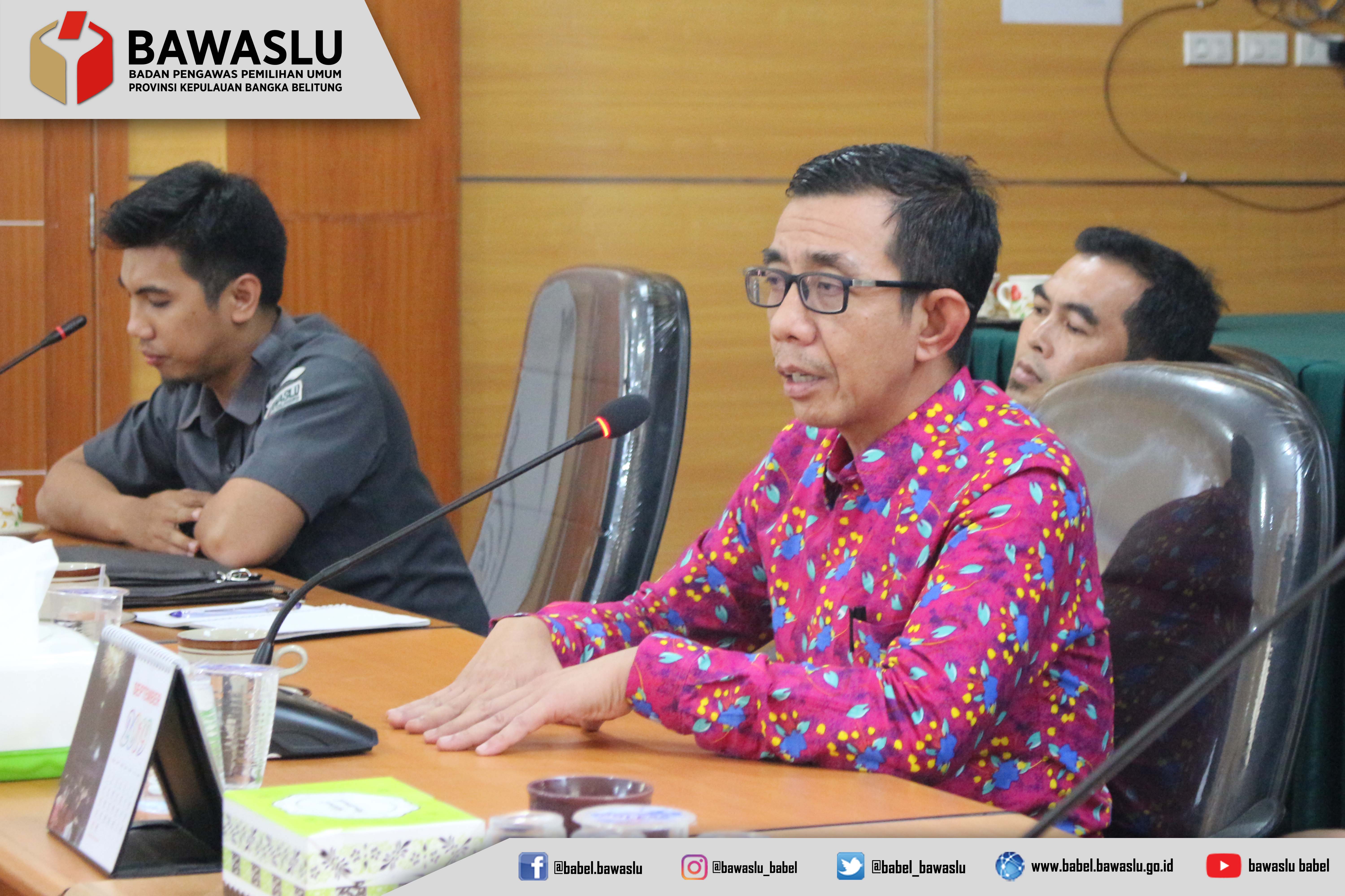 Pangkalpinang, Babel.bawaslu.go.id - Bawaslu Provinsi Kepulauan Bangka Belitung menggelar Rapat Dalam Kantor (RDK) dengan Civitas Akademika Fakultas Ilmu Sosial dan Ilmu Politik (FISIP) Universitas Bangka Belitung, Senin (23/9/2019). RDK ini digelar guna pembahasan pembuatan buku kinerja Bawaslu Provinsi Kepulauan Bangka Belitung dalam pelaksanaan pengawasan Pemilu 2019.