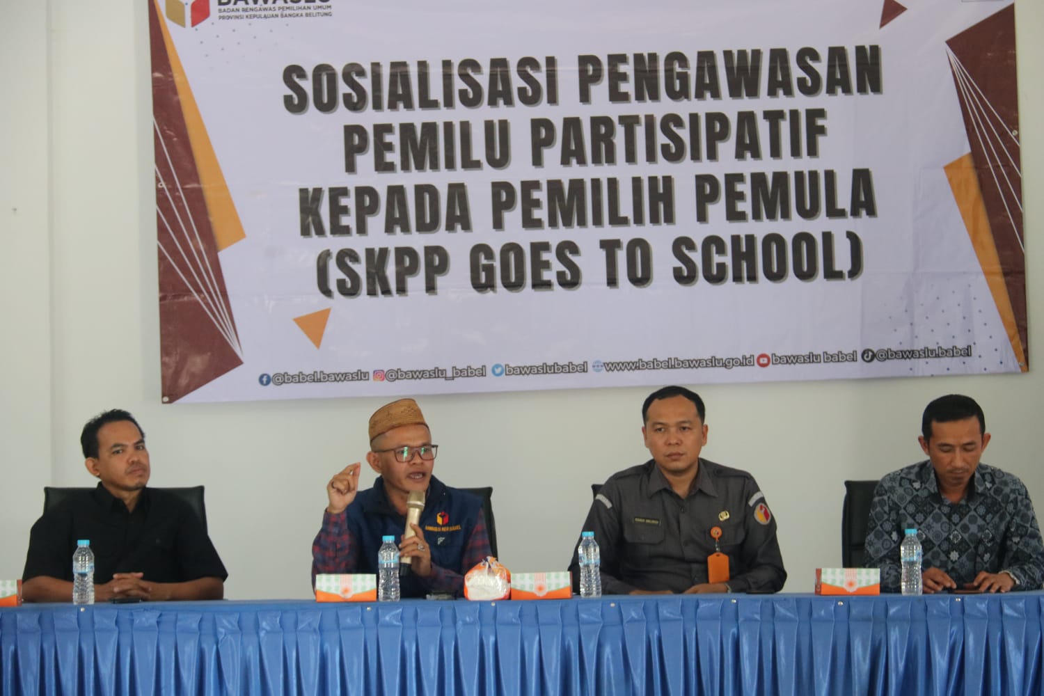 Namang, Bawaslu Babel - Bawaslu Provinsi Kepulauan Bangka Belitung lakukan kegiatan Sosialisasi Pengawasan Pemilu Partisipatif Kepada Pemilih Pemula (SKPP Goes To School) di Gedung Serba Guna Kecamatan Namang, Kabupaten Bangka Tengah, Selasa (05/09/2023).