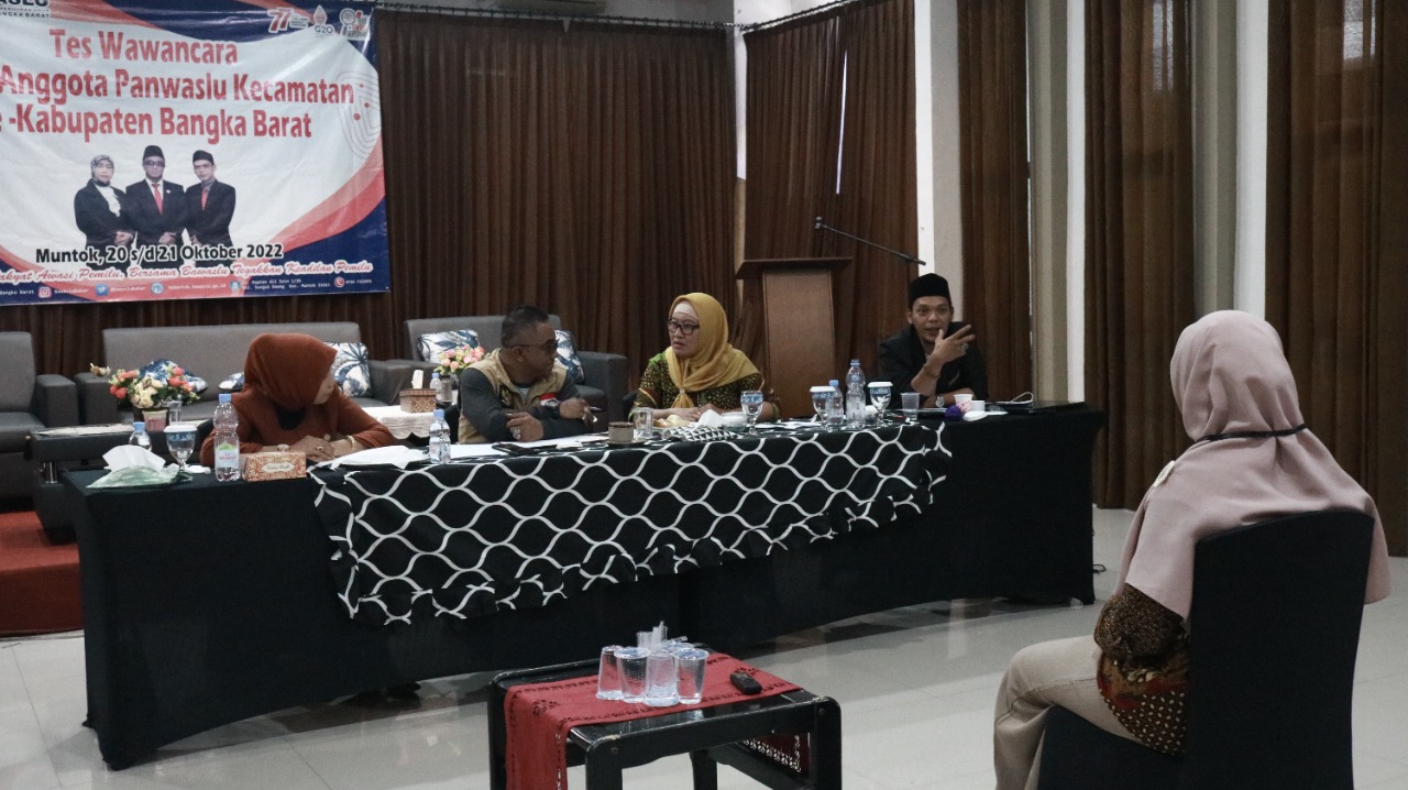 Seleksi wawancara telah dilaksanakan selama 2 hari berturut-turut terhitung sejak Kamis-Jum'at, 20-21 Oktober 2022, di hari pertama peserta yang mengikuti seleksi wawancara ada 15 Calon dari 3 Kecamatan di Bangka Barat yaitu Kecamatan Kelapa, Kecamatan Tempilang dan kecamatan Simpang Teritip, calon Panwascam kecamatan Tempilang hanya 3 orang yang hadir, 3 orang tidak dapat hadir kemudian Bawaslu Kabupaten Bangka Barat sepakat untuk memanggil peserta yang berada di peringkat 7, 8 dan 9 untuk mengikuti tes wawancara di hari kedua berdasarkan rapat Pleno Pimpinan Bawaslu Kabupaten Bangka Barat.