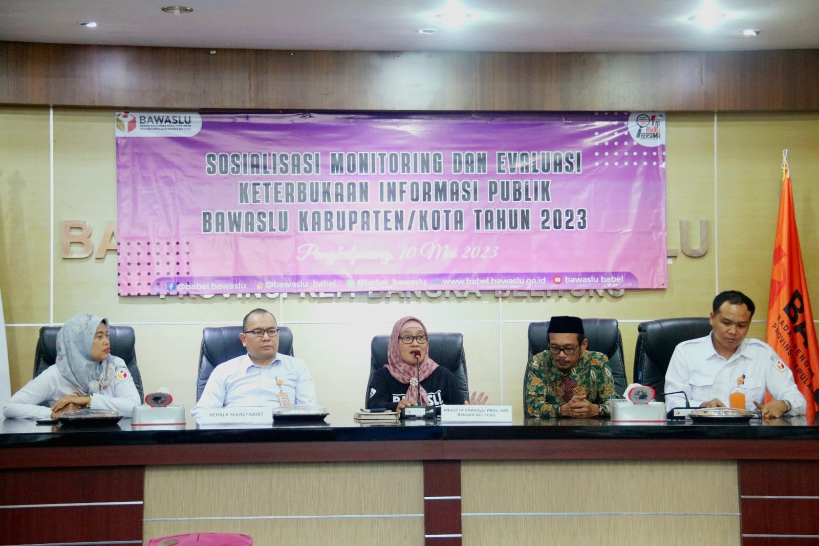 Pangkalpinang, Bawaslu Provinsi Kepulauan Bangka Belitung -- Bawaslu Provinsi Kepulauan Bangka Belitung (Babel) menggelar sosialisasi Monitoring dan Evaluasi Keterbukaan Informasi Publik kepada Bawaslu Kabupaten/Kota di Babel, Rabu (10/05/2023).