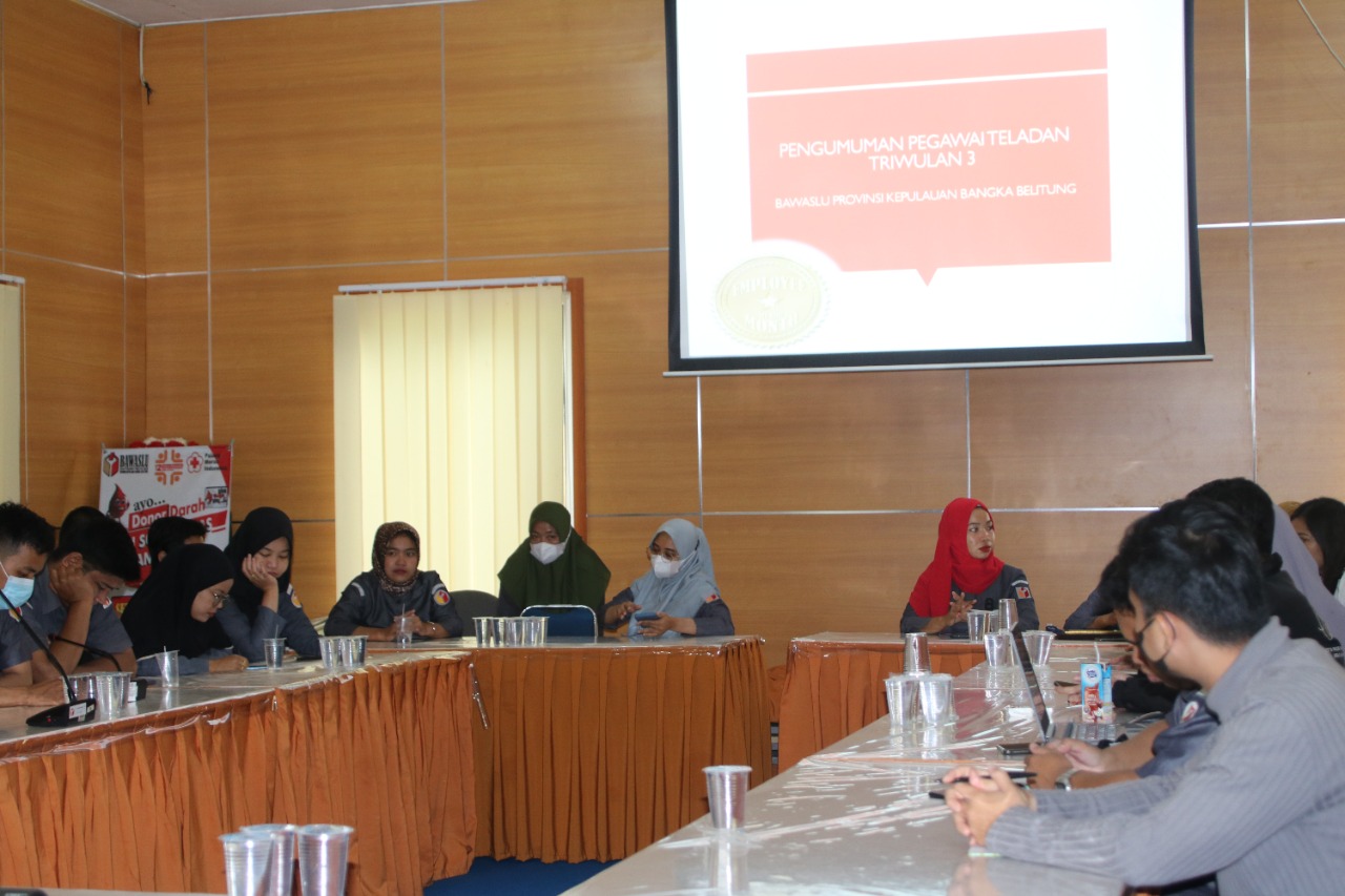 Pangkalpinang, Babel.Bawaslu.go.id -- Bawaslu Provinsi Kepulauan Bangka Belitung (Babel) kembali mengumumkan predikat pegawai teladan untuk Triwulan III Tahun 2022 di ruang rapat Bawaslu Babel, Selasa (08/11/2022).